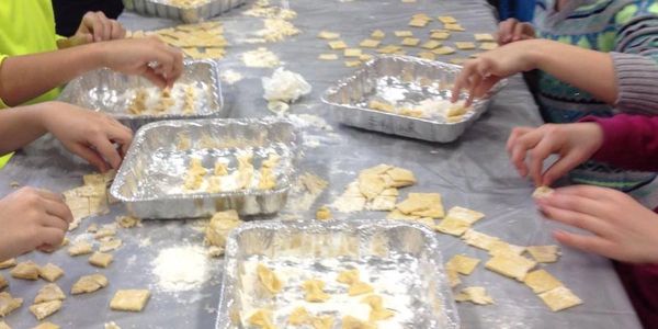 In this delicious party each guest will be cracking eggs; mixing & measuring ingredients to make homemade Farfalle Pasta (a/k/a bowties!) then we cook them up to serve with butter & cheese. They will also make a chopped salad with lemon vinaigrette dressing and decorate 1 large cookie or cupcake to be used as the birthday cake when we sing happy birthday!
